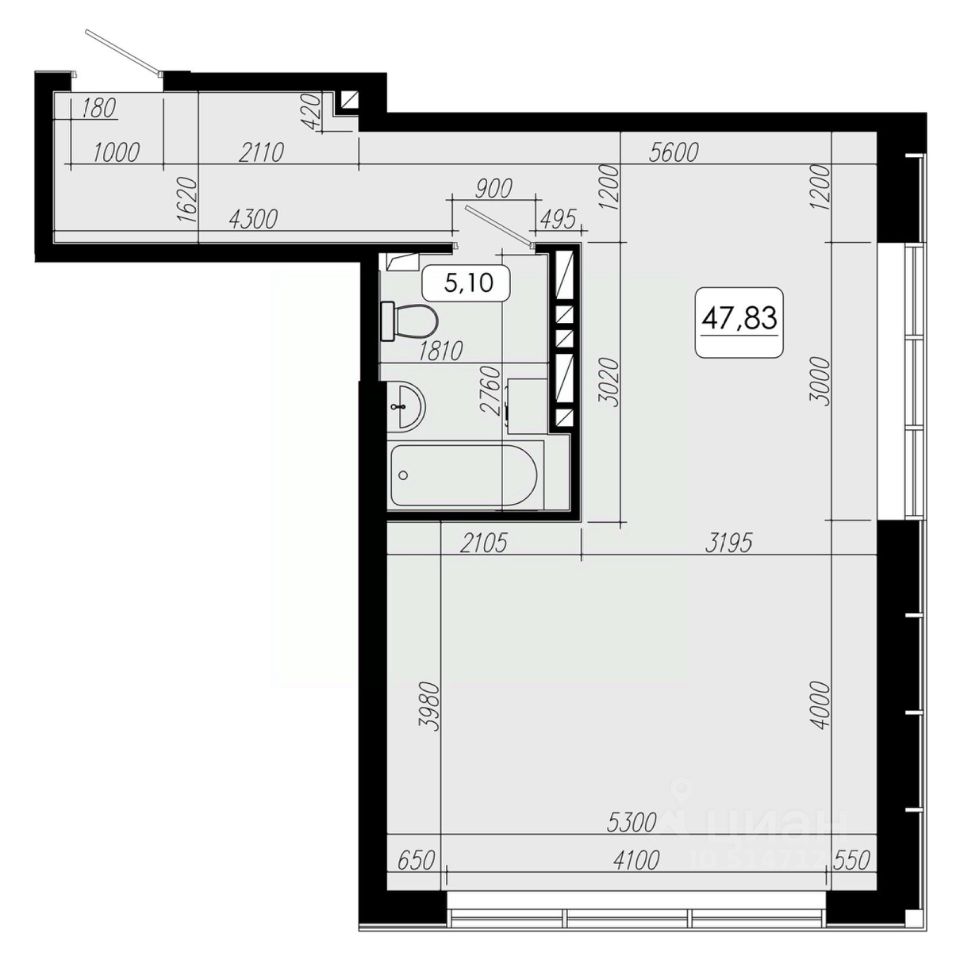Общая площадь47,83 м²