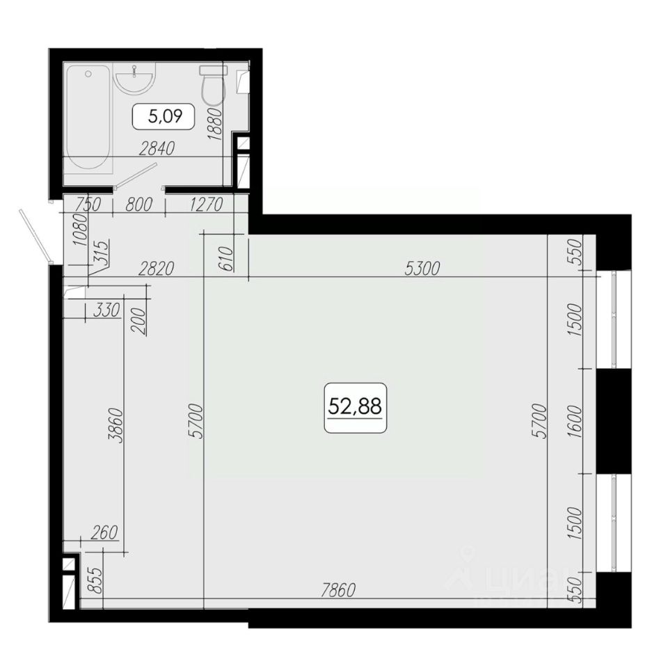 Общая площадь52,88 м²