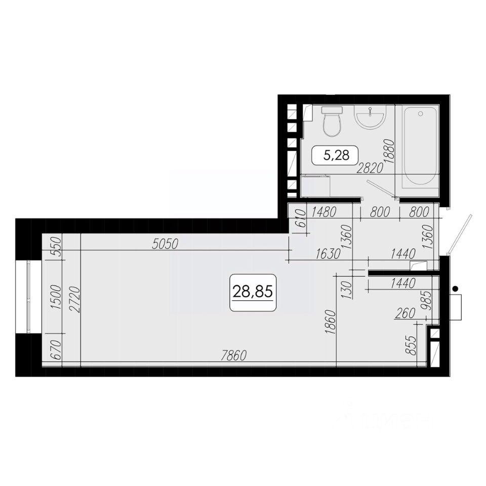 Общая площадь28,85 м²