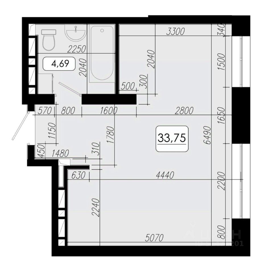 Общая площадь33,75 м²