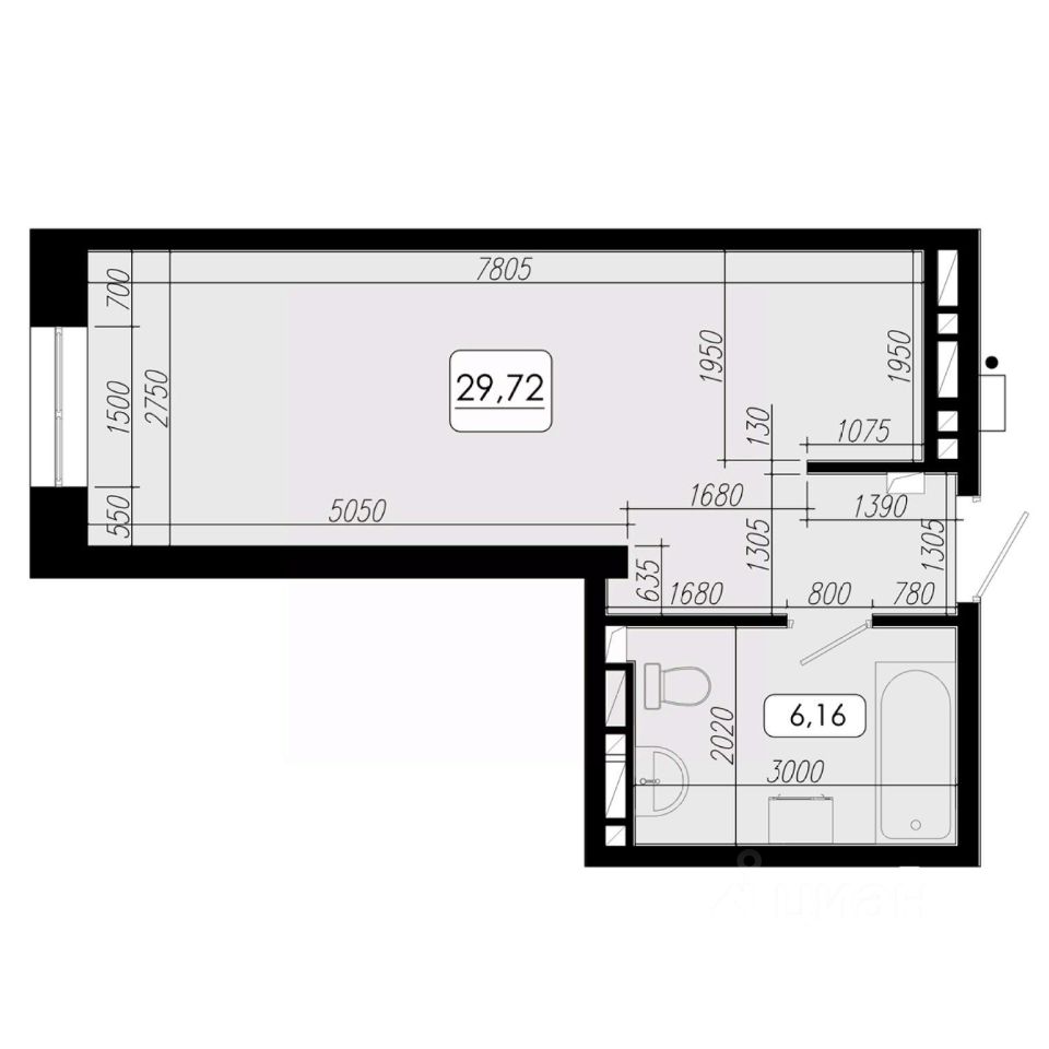 Общая площадь29,72 м²