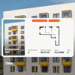 Продаётся 2-комн. квартира площадью 56,37 кв.м на 2 этаже 17 этажного дома (Корпус 7, Секция 1) проекта ПИК Босфорский парк. Светлый просторный подъезд на уровне земли, функциональная планировка, большие окна, предчистовая отделка.