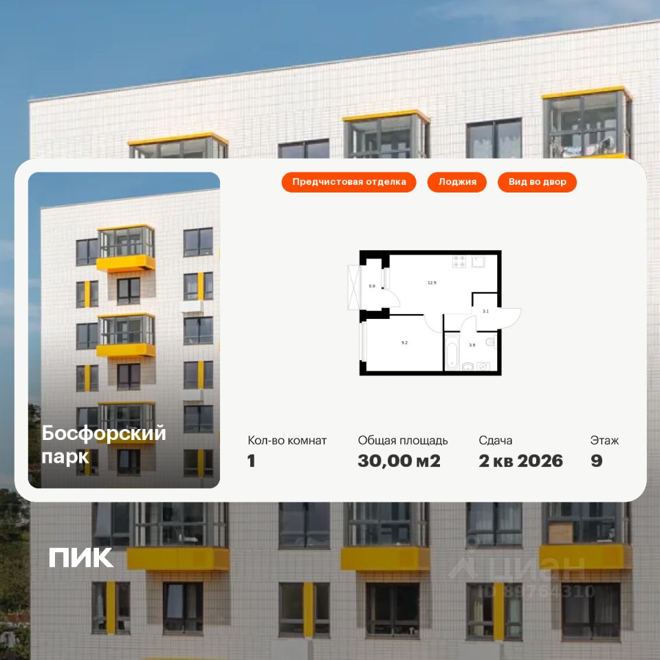 Продаётся 1-комн. квартира площадью 30 кв.м на 9 этаже 17 этажного дома (Корпус 5, Секция 1) проекта ПИК Босфорский парк. Светлый просторный подъезд на уровне земли, функциональная планировка, большие окна, предчистовая отделка.