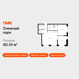 Продаётся 2-комн. квартира площадью 60,1 кв.м на 22 этаже 24 этажного дома (Корпус 2, Секция 2) проекта ПИК Снежный парк. Светлый просторный подъезд на уровне земли, функциональная планировка, большие окна, предчистовая отделка.