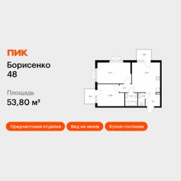 Продаётся 2-комн. квартира площадью 53,8 кв.м на 16 этаже 17 этажного дома (Корпус 3, Секция 3) проекта ПИК Борисенко 48. Светлый просторный подъезд на уровне земли, функциональная планировка, большие окна, предчистовая отделка.