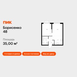 Продаётся 1-комн. квартира площадью 35 кв.м на 9 этаже 17 этажного дома (Корпус 1, Секция 1) проекта ПИК Борисенко 48. Светлый просторный подъезд на уровне земли, функциональная планировка, большие окна, c отделкой.