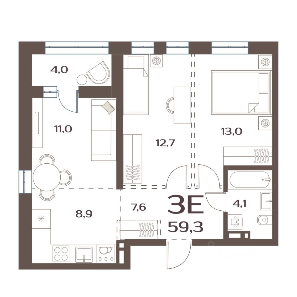 57,6 м²