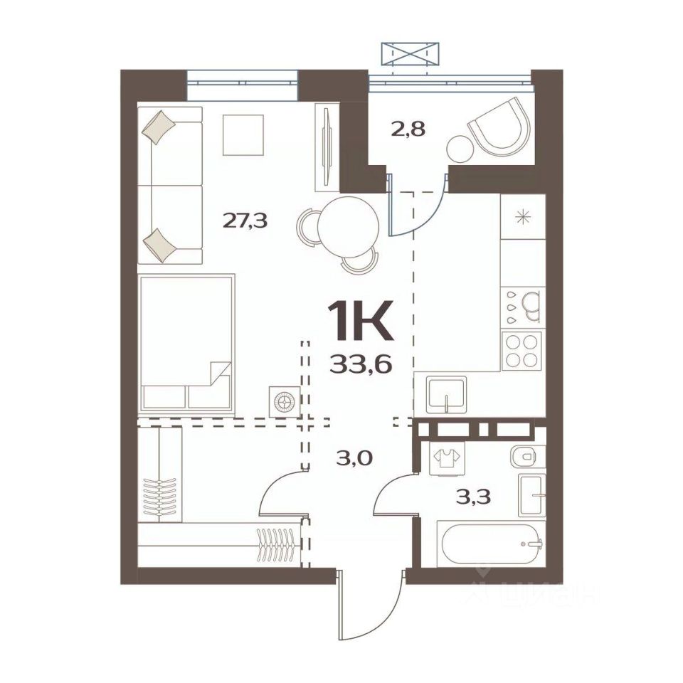 33,6 м²