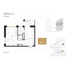 Общая площадь43,8 м²
