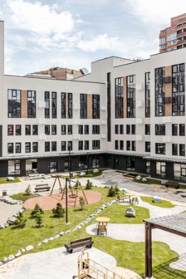 Комфортному пребыванию во дворе уделено также много внимания, как и проживанию в квартире. Детские и спортивные площадки, зоны отдыха располагаются как на стилобатной части между корпусами, так и на парковой территории рядом с комплексом. Проектом предусмотрено комплексное благоустройство и озеленение территории жилого комплекса.