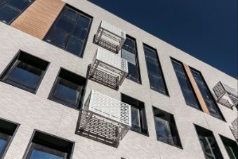 В проекте создано необычное архитектурное пространство с чередованием высотной застройки и малоэтажными зданиями по 5-7 этажей. Жилой комплекс спроектирован таким образом, чтобы учесть предпочтения и любителей жить на высоте, и тех, кому по душе камерный формат невысоких домов. Фасады выполнены из фиброцементных японских панелей в стиле современного минимализма с характерными яркими акцентами.