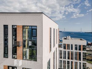 Амурский жилой комплекс на берегу Амурского залива в районе Эгершельд, состоящий из нескольких корпусов переменной этажности, собственного паркинга в стилобатной части и комфортабельных общественных пространств.