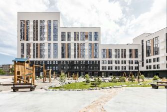 Комфортному пребыванию во дворе уделено также много внимания, как и проживанию в квартире. Детские и спортивные площадки, зоны отдыха располагаются как на стилобатной части между корпусами, так и на парковой территории рядом с комплексом. Проектом предусмотрено комплексное благоустройство и озеленение территории жилого комплекса.