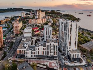 Из множества квартир комплекса будет открываться прекрасный вид на просторы Амурского залива. Можно любоваться потрясающими закатами прямо из окон собственной квартиры.