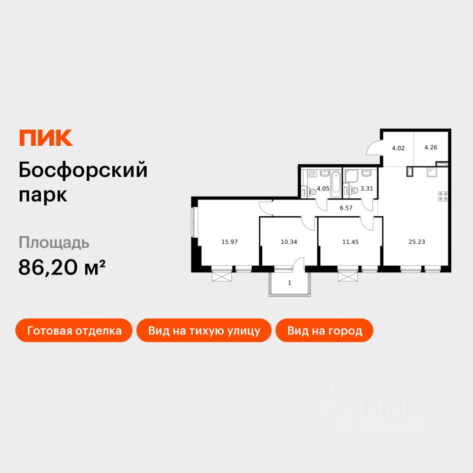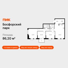 Продаётся 3-комн. квартира площадью 86,2 кв.м на 3 этаже 9 этажного дома (Корпус 8, Секция 1) проекта ПИК Босфорский парк. Светлый просторный подъезд на уровне земли, функциональная планировка, большие окна, c отделкой.