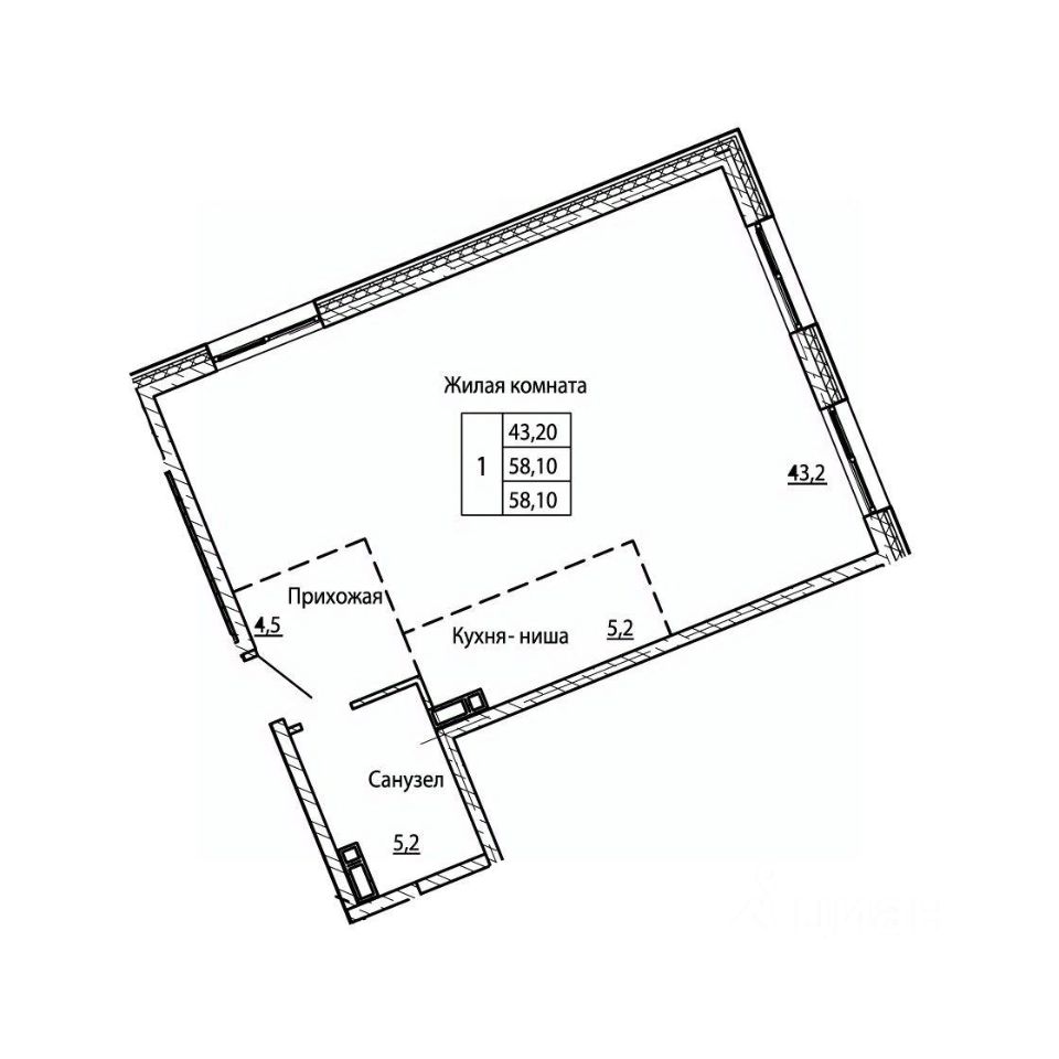 Продаётся 2-комнатная квартира в строящемся доме (Корпус 1), срок сдачи: II-кв. 2026, общей площадью 58.1 кв.м., на 12 этаже.