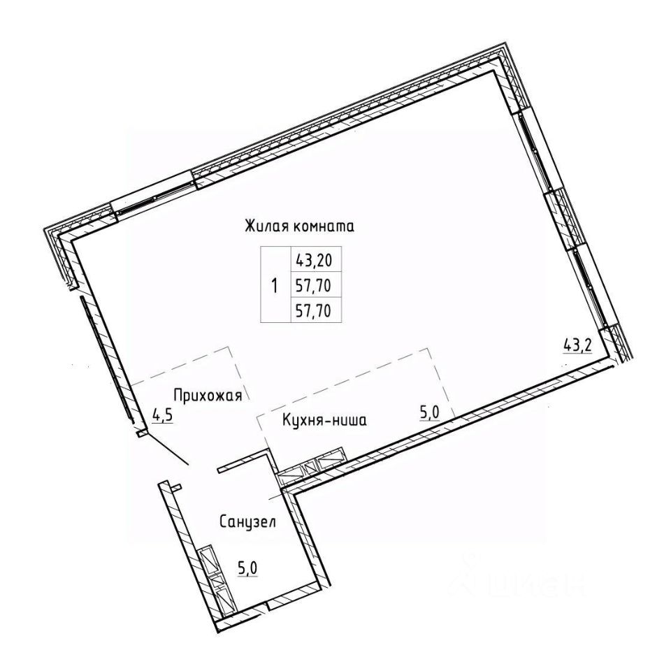 Продаётся 2-комнатная квартира в строящемся доме (Корпус 1), срок сдачи: II-кв. 2026, общей площадью 57.7 кв.м., на 16 этаже.