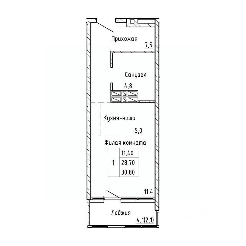 Продаётся студия в строящемся доме (Корпус 1), срок сдачи: II-кв. 2026, общей площадью 30.8 кв.м., на 18 этаже.