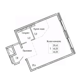 1-комн. квартира, 46,2 м²