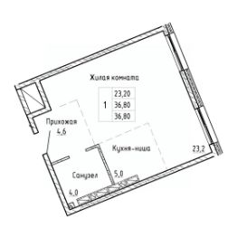 Продаётся 1-комнатная квартира в строящемся доме (Корпус 1), срок сдачи: II-кв. 2026, общей площадью 36.8 кв.м., на 21 этаже.