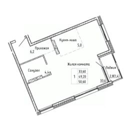 Продаётся 2-комнатная квартира в строящемся доме (Корпус 1), срок сдачи: II-кв. 2026, общей площадью 50.6 кв.м., на 22 этаже.
