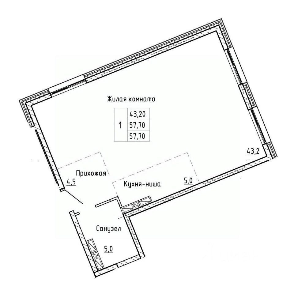 57,7 м²