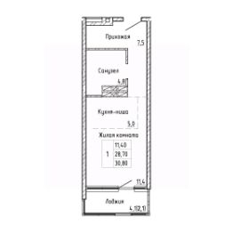 Продаётся студия в строящемся доме (Корпус 1), срок сдачи: II-кв. 2026, общей площадью 30.8 кв.м., на 17 этаже.