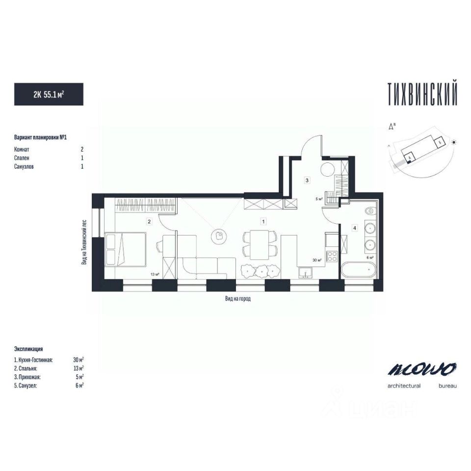 Общая площадь55,1 м²