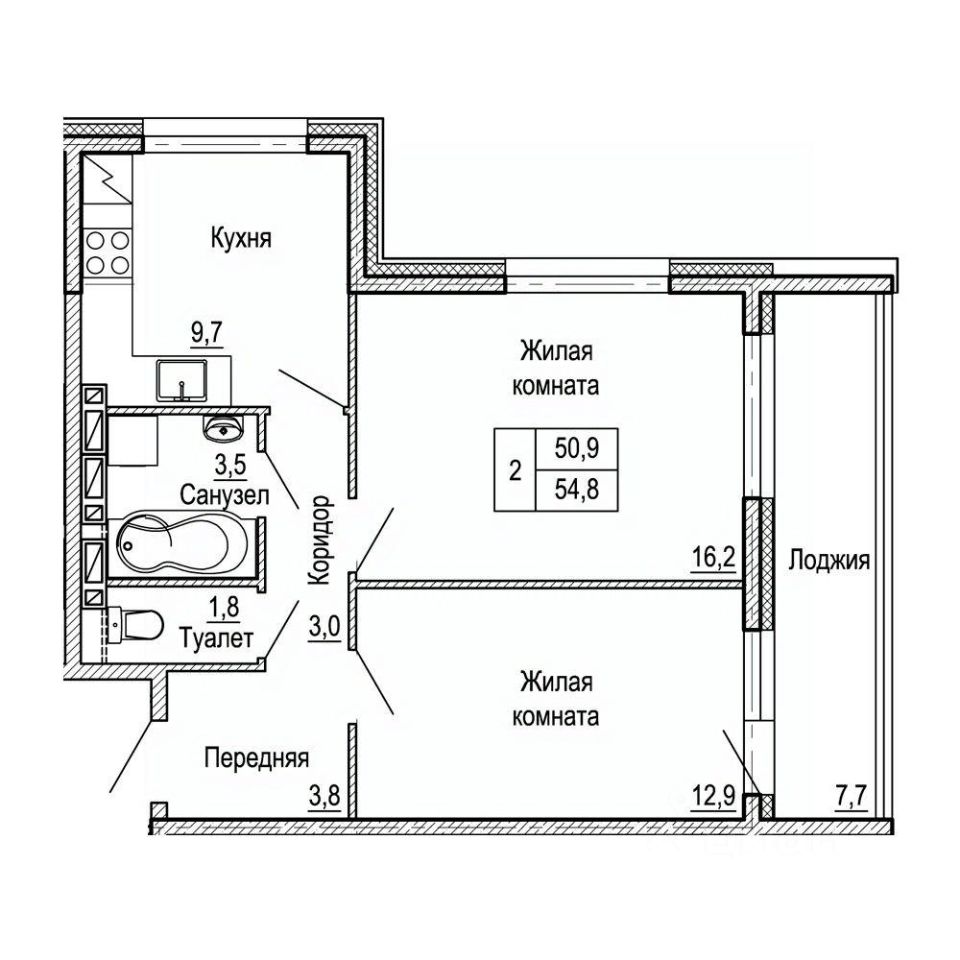 Общая площадь54,8 м²