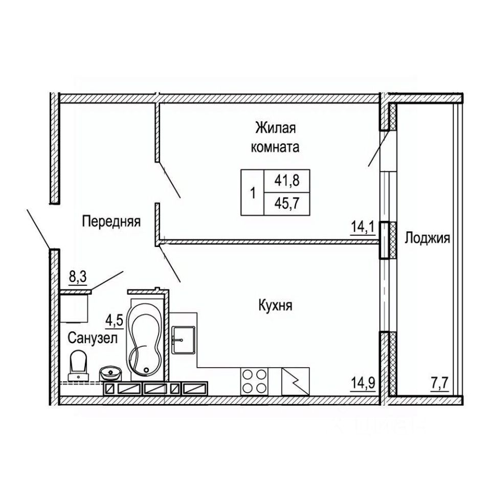 Общая площадь45,7 м²