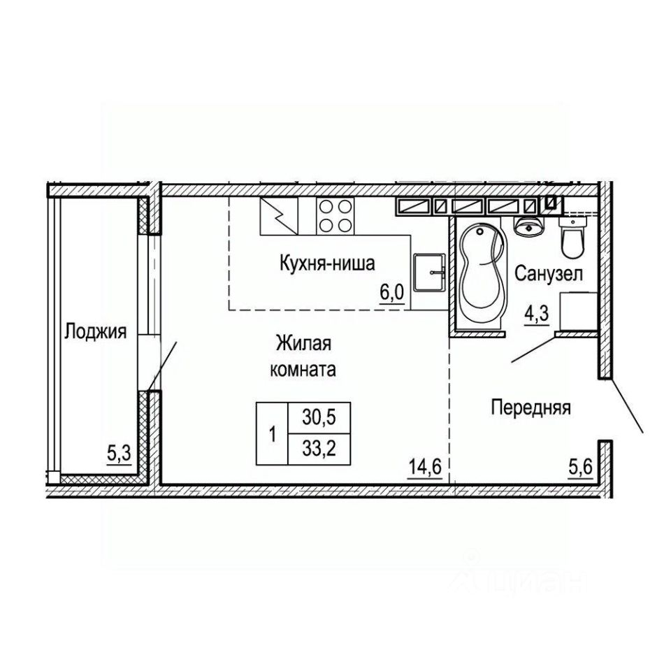 Общая площадь33,2 м²