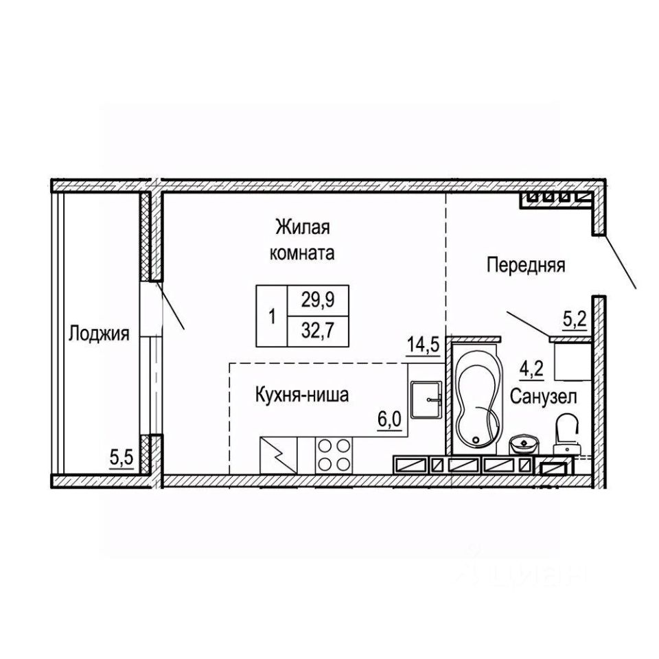 32,7 м²