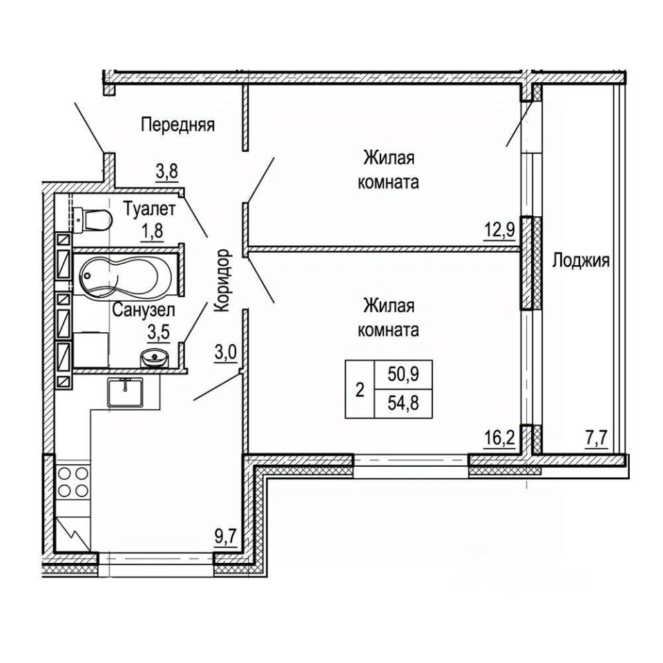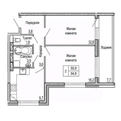 Общая площадь54,8 м²