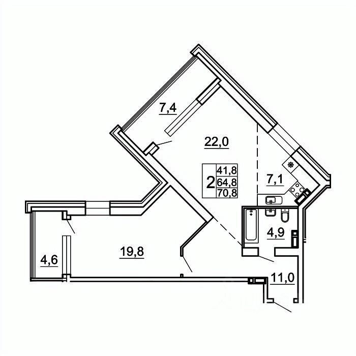 70,8 м²