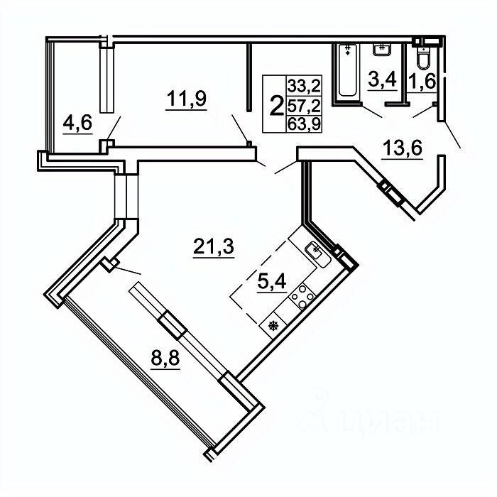 63,9 м²