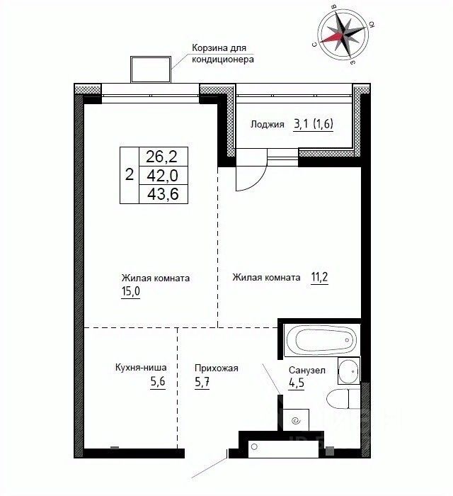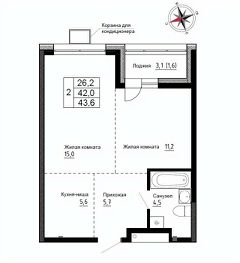 Продаётся 2-комнатная квартира в строящемся доме (Дом 2), срок сдачи: III-кв. 2026, общей площадью 43.5 кв.м., на 1 этаже. ЖК "Новый" - это: