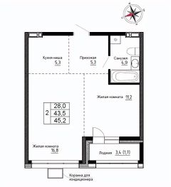 Продаётся 2-комнатная квартира в строящемся доме (Дом 2), срок сдачи: III-кв. 2026, общей площадью 45.2 кв.м., на 1 этаже. ЖК "Новый" - это:
