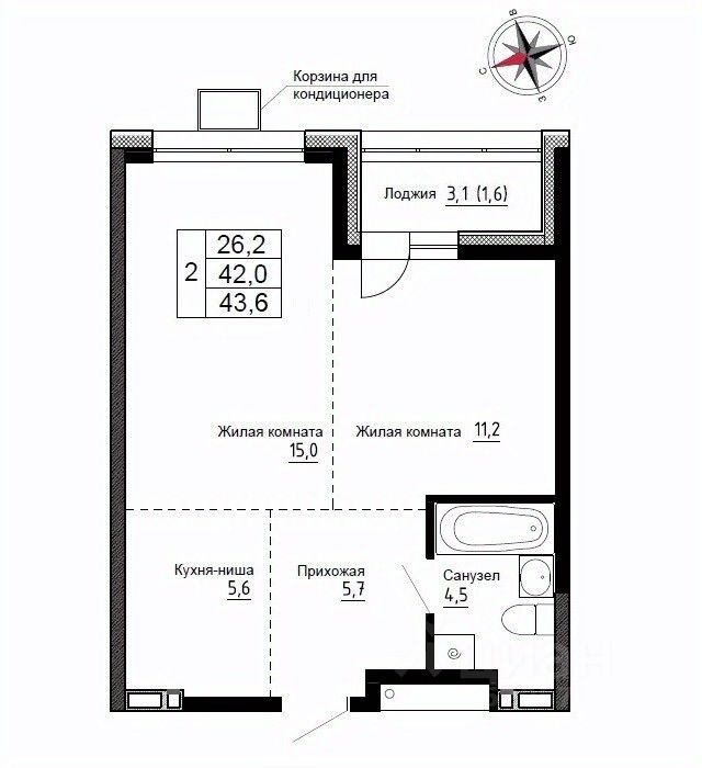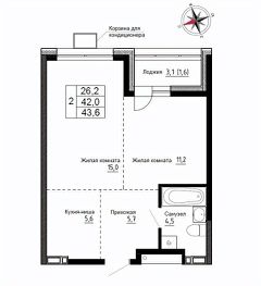 Продаётся 2-комнатная квартира в строящемся доме (Дом 2), срок сдачи: III-кв. 2026, общей площадью 43.3 кв.м., на 4 этаже. ЖК "Новый" - это: