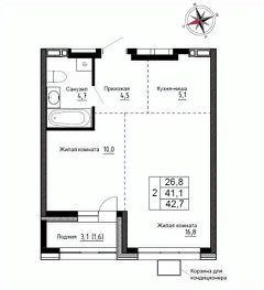 Продаётся 2-комнатная квартира в строящемся доме (Дом 2), срок сдачи: III-кв. 2026, общей площадью 42.5 кв.м., на 4 этаже. ЖК "Новый" - это: