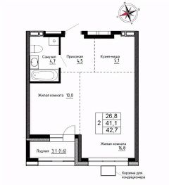 Продаётся 2-комнатная квартира в строящемся доме (Дом 2), срок сдачи: III-кв. 2026, общей площадью 42.5 кв.м., на 5 этаже. ЖК "Новый" - это: