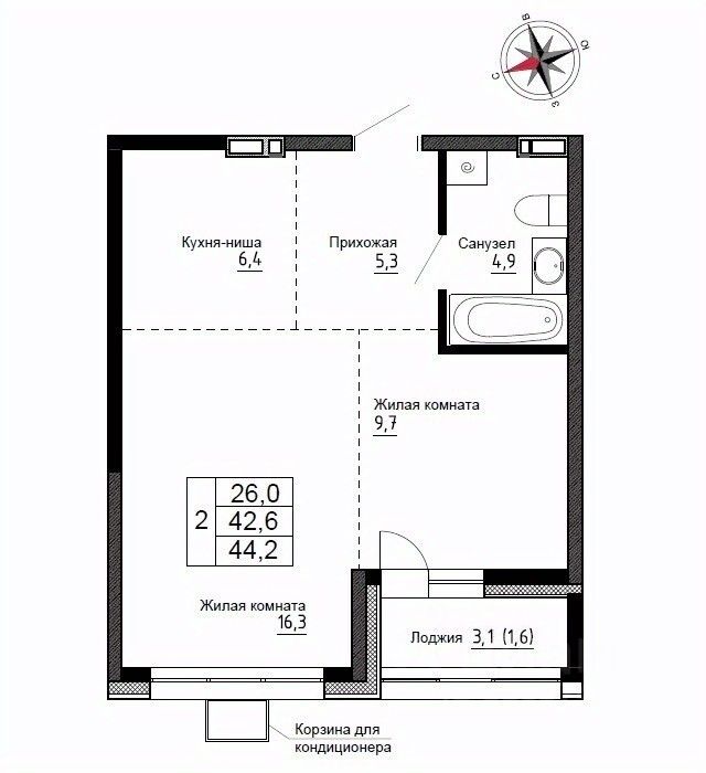 Продаётся 2-комнатная квартира в строящемся доме (Дом 2), срок сдачи: III-кв. 2026, общей площадью 44 кв.м., на 9 этаже. ЖК "Новый" - это:
