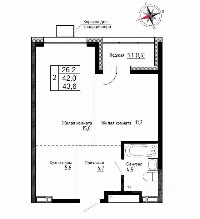 Продаётся 2-комнатная квартира в строящемся доме (Дом 2), срок сдачи: III-кв. 2026, общей площадью 43.3 кв.м., на 12 этаже. ЖК "Новый" - это: