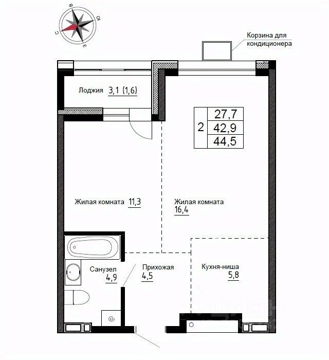 Продаётся 2-комнатная квартира в строящемся доме (Дом 2), срок сдачи: III-кв. 2026, общей площадью 44.3 кв.м., на 12 этаже. ЖК "Новый" - это: