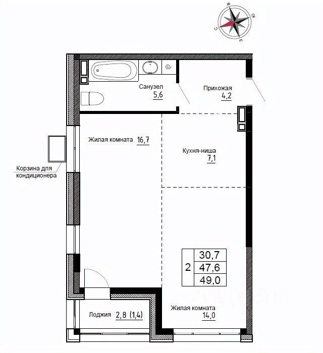 Продаётся 2-комнатная квартира в строящемся доме (Дом 2), срок сдачи: III-кв. 2026, общей площадью 48.8 кв.м., на 13 этаже. ЖК "Новый" - это: