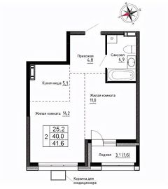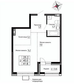 Продаётся 2-комнатная квартира в строящемся доме (Дом 1), срок сдачи: III-кв. 2026, общей площадью 41.2 кв.м., на 5 этаже. ЖК "Новый" - это: