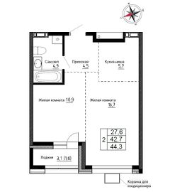 Продаётся 2-комнатная квартира в строящемся доме (Дом 1), срок сдачи: III-кв. 2026, общей площадью 44.3 кв.м., на 7 этаже. ЖК "Новый" - это: