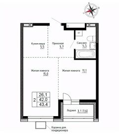 Продаётся 2-комнатная квартира в строящемся доме (Дом 1), срок сдачи: III-кв. 2026, общей площадью 43.3 кв.м., на 7 этаже. ЖК "Новый" - это: