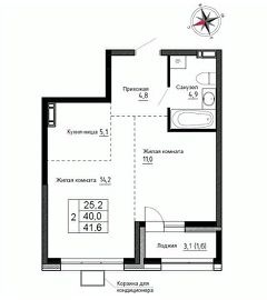 Продаётся 2-комнатная квартира в строящемся доме (Дом 1), срок сдачи: III-кв. 2026, общей площадью 41.2 кв.м., на 10 этаже. ЖК "Новый" - это: