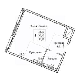Продаётся 1-комнатная квартира в строящемся доме (Корпус 1), срок сдачи: II-кв. 2026, общей площадью 36.8 кв.м., на 25 этаже.