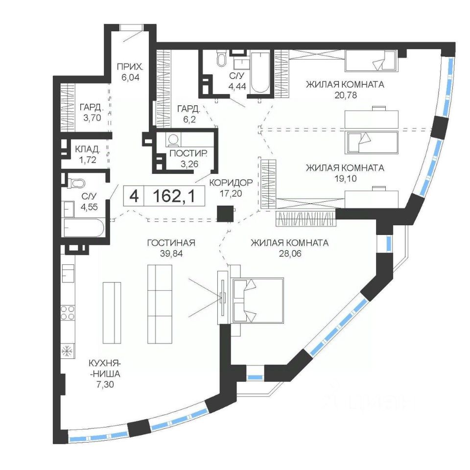 Продаётся 4-комнатная квартира в строящемся доме (Дом 1), срок сдачи: IV-кв. 2025, общей площадью 162.1 кв.м., на 10 этаже. ЖК представляет собой футуристический архитектурный ансамбль, состоящий из двух башен высотой 24 этажа и монументальной стилобатной части, на 5 этажах которой будут располагаться парковочная зона, а также современный торговый центр. Несмотря на слегка дерзкий вид башен, стремительно взмывающих вверх, они прекрасным образом гармонируют с окружающим пространством: солнечные лучи, играющие на зеркальной поверхности фасада, и отражающиеся на ней облака создают фантастический пространственный эффект! Высота наземной части зданий составляет 75 м., общая площадь насчитывает около 40 000 кв. м. - всё это 399 апартаментов свободной планировки, площадью от 97 до 200 кв. м. 192 апартамента.